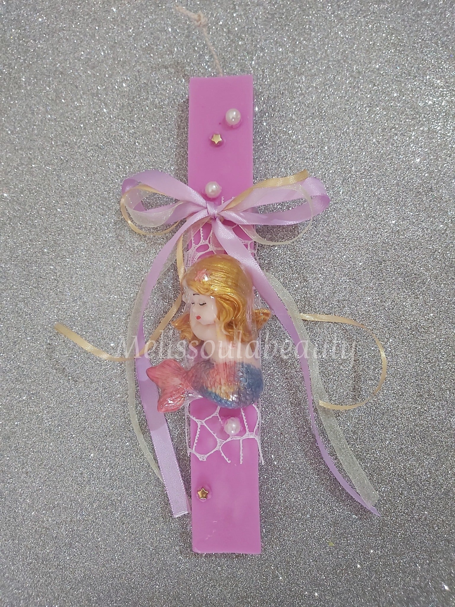 Χειροποίητη πασχαλινή αρωματική λαμπάδα με αρωματικό σαπουνάκι γοργόνα.