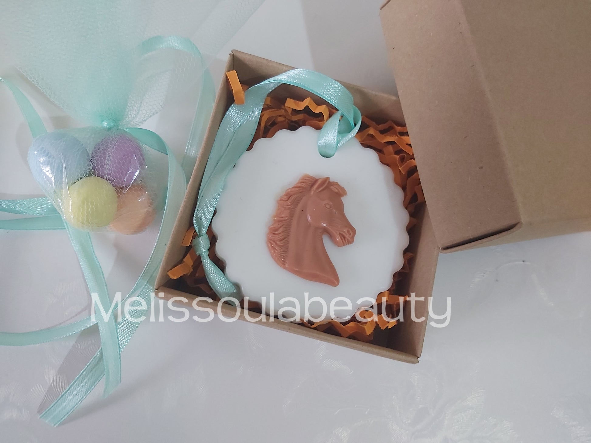 Μπομπονιέρα αρωματικό σαπουνάκι άλογο σε κουτί craft ή λευκό.