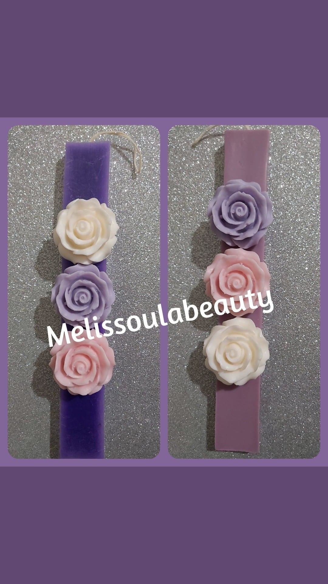 Χειροποίητη λαμπάδα με κερί σόγιας και τριαντάφυλλα